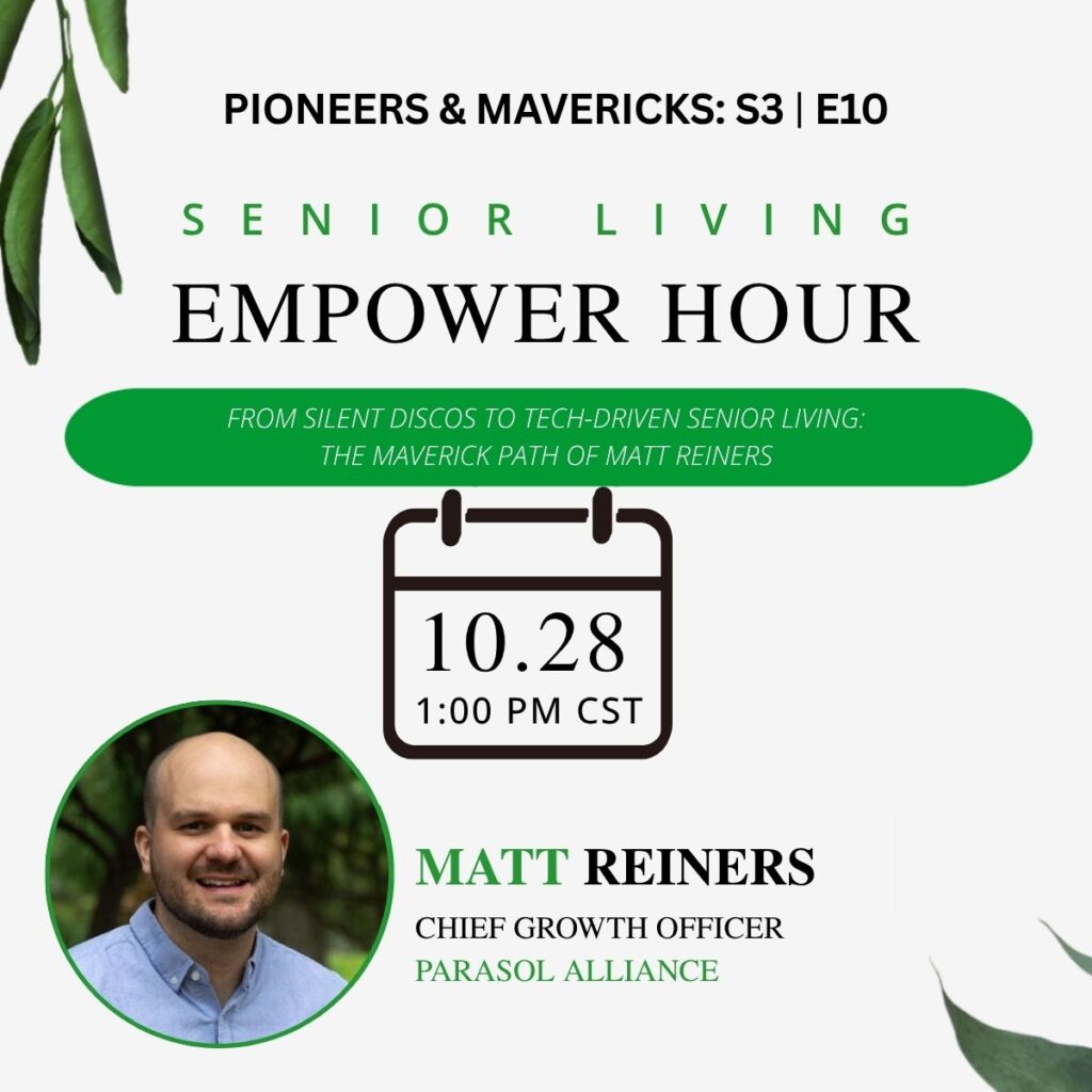 We’re excited to welcome Matt Reiners, Chief Growth Officer at Parasol Alliance, to the Senior Living Empower Hour this October. Matt’s Journey begam not in IT, but in telemarketing, silent discos, and eventually founding Eversound to combat social isolation in senior living. Now, as Chief Growth Officer at Parasol Alliance, he’s helping senior living communities across the country shift from reactive IT support to proactive tech stategy – turning technology into a strategic asset, not a back-office burden.